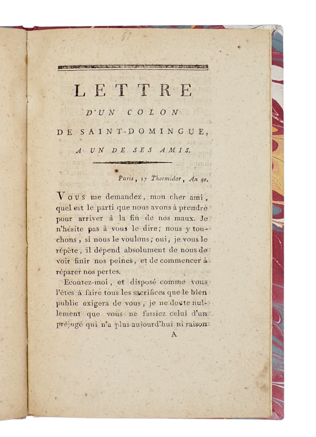 Lettre d'un colon de Saint-Domingue, a un de ses amis.