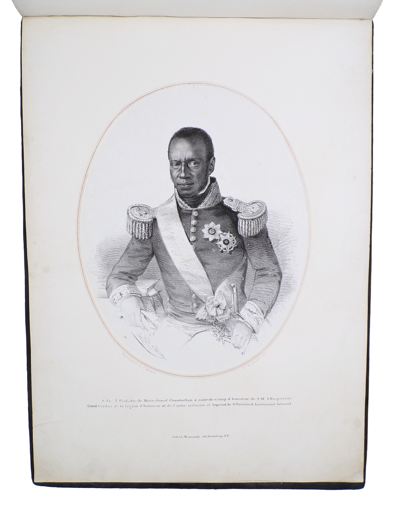 A majestic album of extremely rare early images of Black people in sovereign power. Consisting of 12 staggering lithographed plates made in New York after daguerreotype pictures taken in Haiti of the coronation of the first Emperor of Haiti, Faustin I. A very rare complete copy in its original binding.