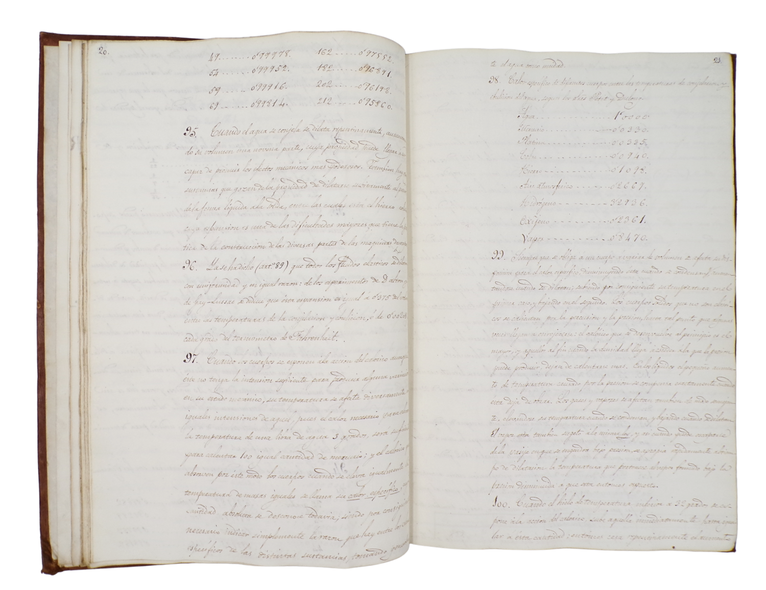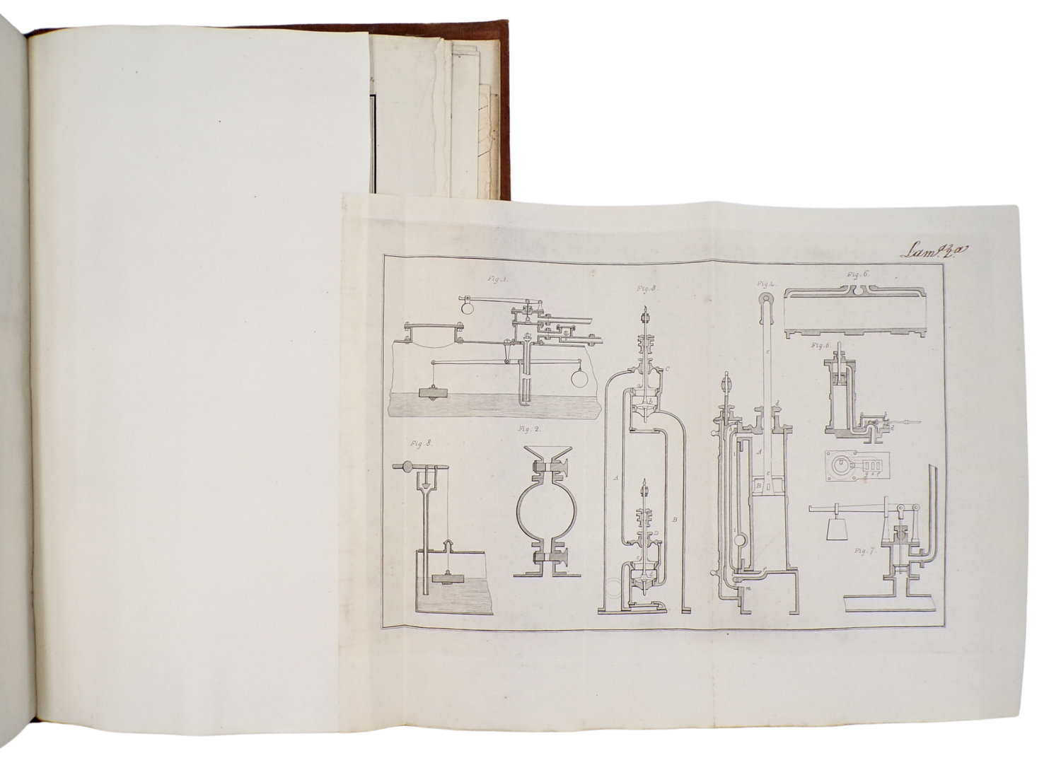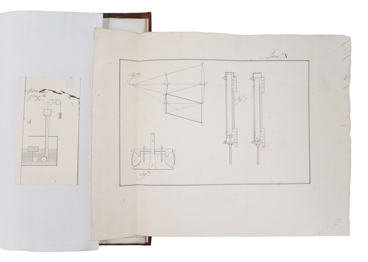 Manuscript draft for the first Spanish technical treatise on the steam engine, authored by the founder of the modern Spanish Navy. Written in Baltimore, this impressive folio in-depth report on the latest advancements in steam engineering in the United States is illustrated with three original detailed technological drawings in ink and nine engraved plates from another publication. This work represents an early introduction of steam engineering to Spain, as the first Spanish steam-powered factory was only opened in 1832, while in the United States, this technology was already much more advanced.