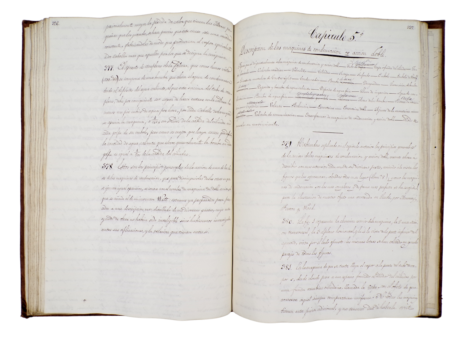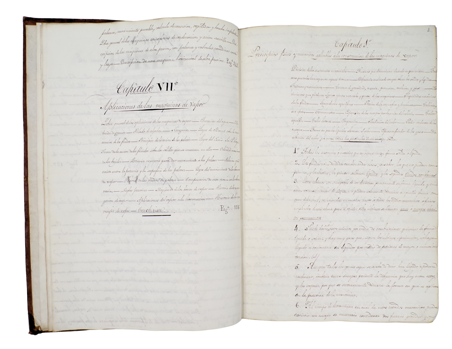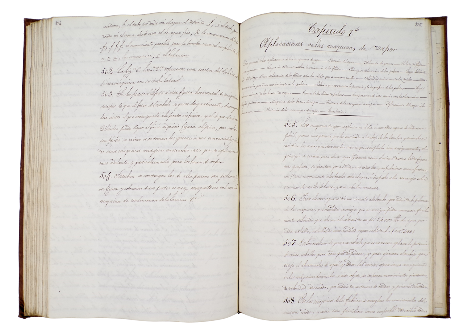 American manuscript for the first Spanish technical steam engine treatise, with technical drawings