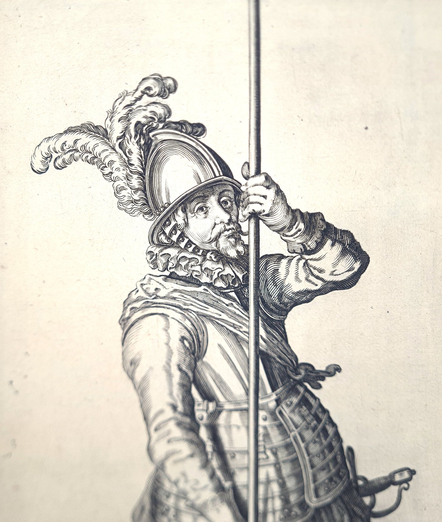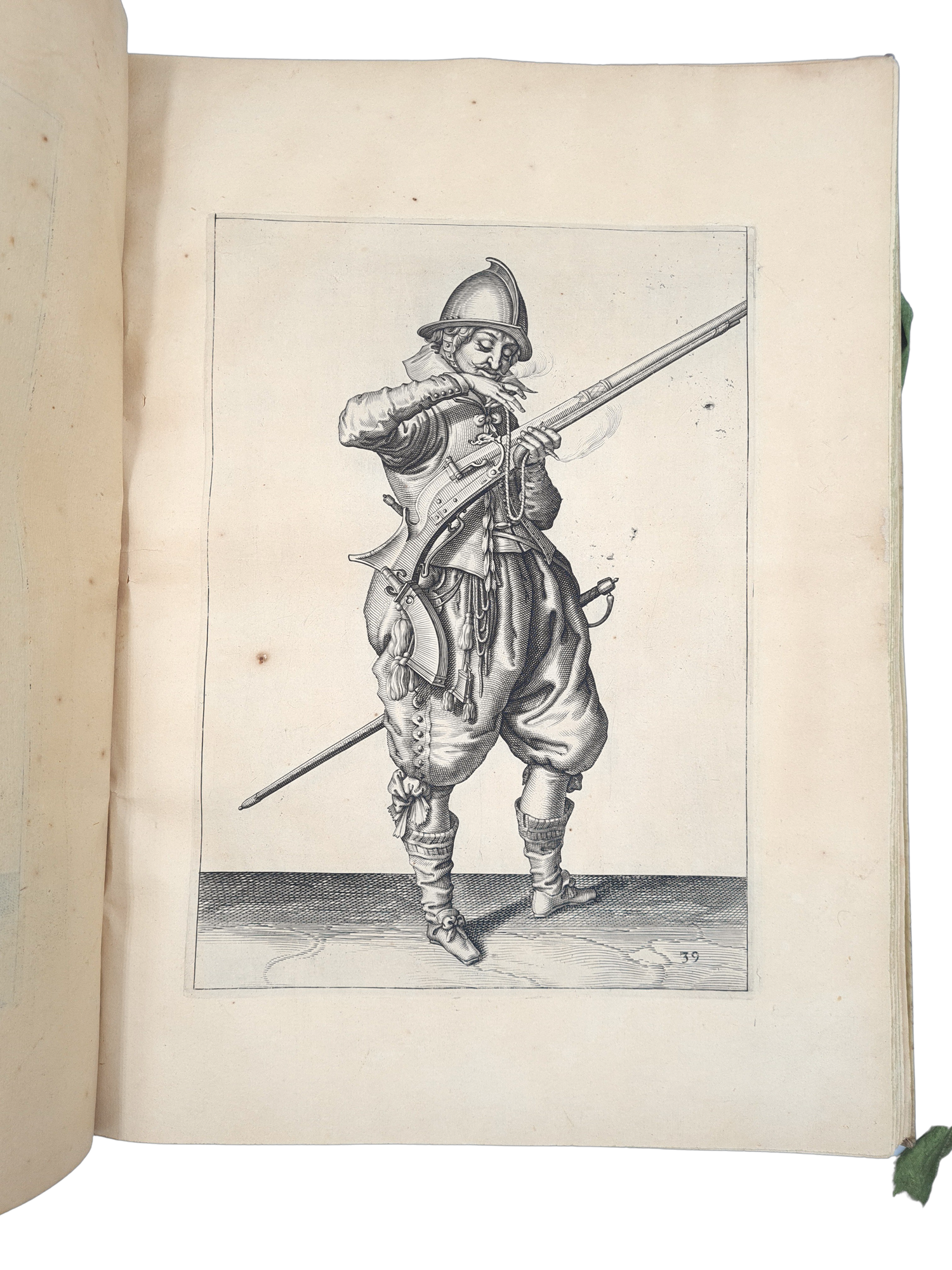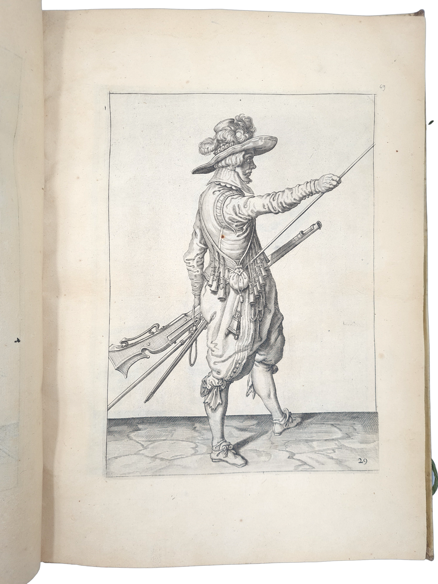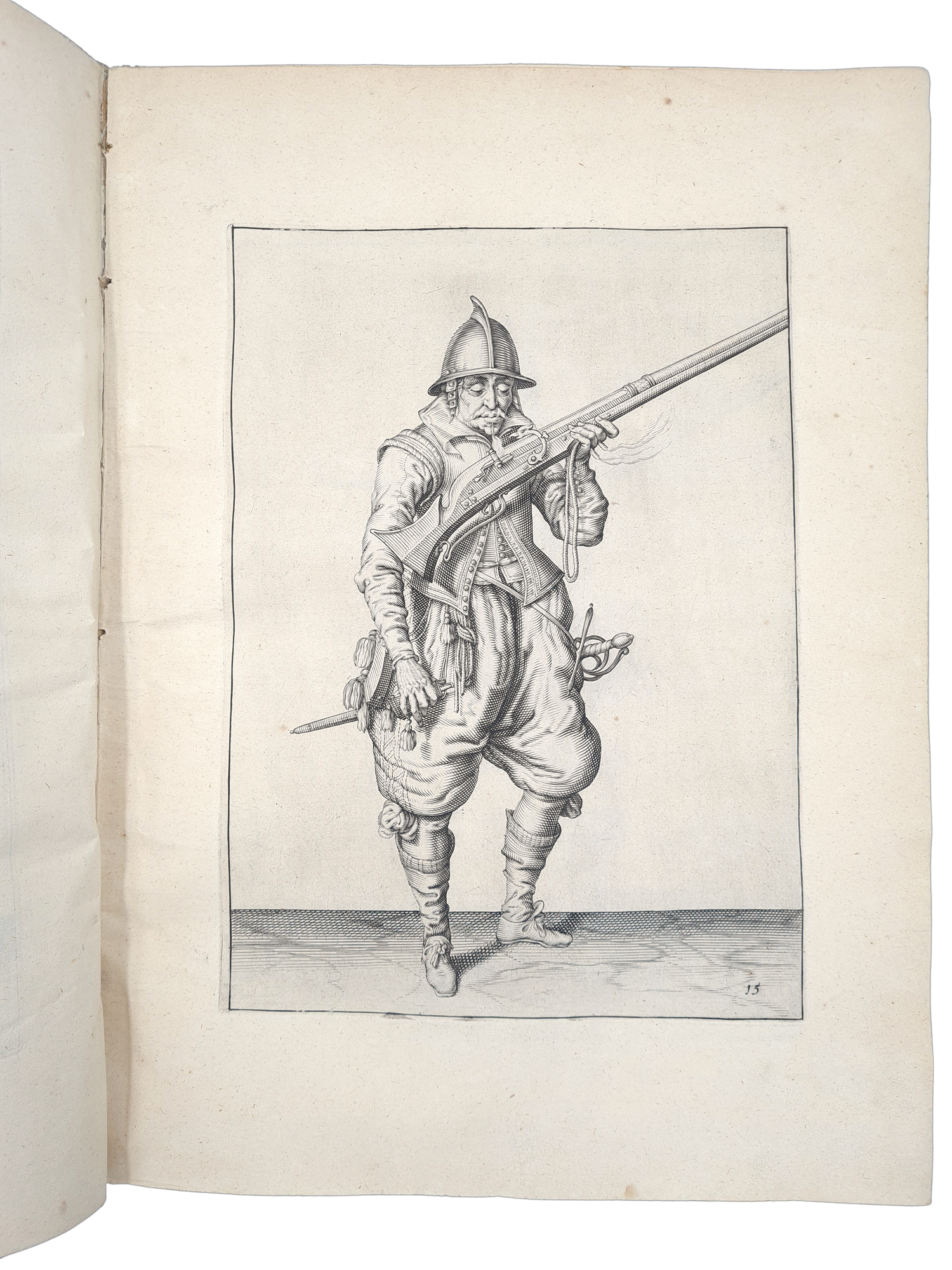 De Gheyn’s three series of plates on the use of the blunderbuss (42), the musket (43) and the picket (32), is justly regarded as the greatest arms book of the 17th century and one of the masterpieces of Dutch Golden Age printmaking. A priceless resource for the organization and training of troops, De Gheyn's book created an overnight sensation throughout Europe and was quickly translated into several languages. An incredible number of imitations editions have since appeared.