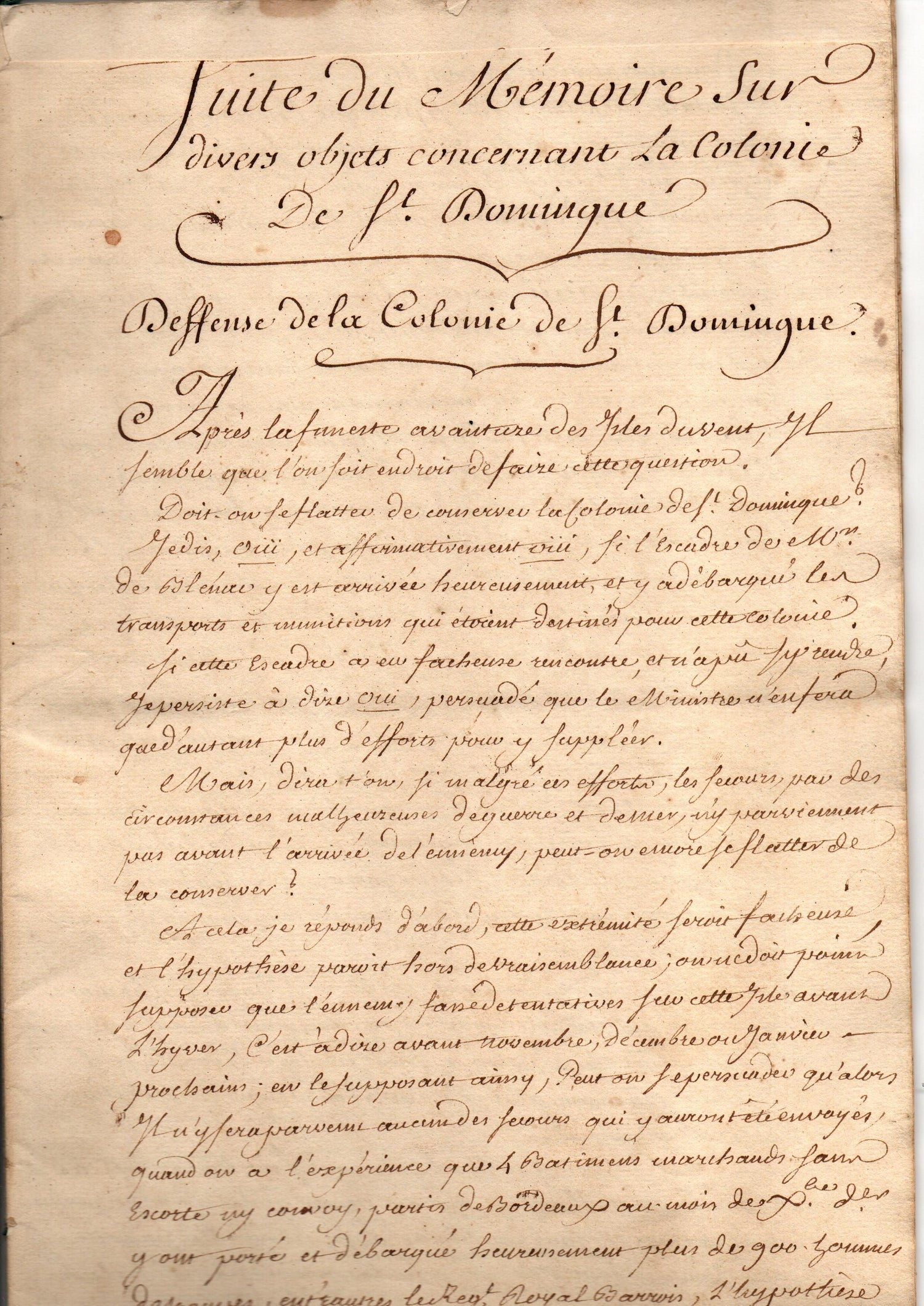 • Suite du Mémoire sur divers objets concernant la Colonie de Saint-Domingue. Défense de la Colonie de Saint-Domingue.