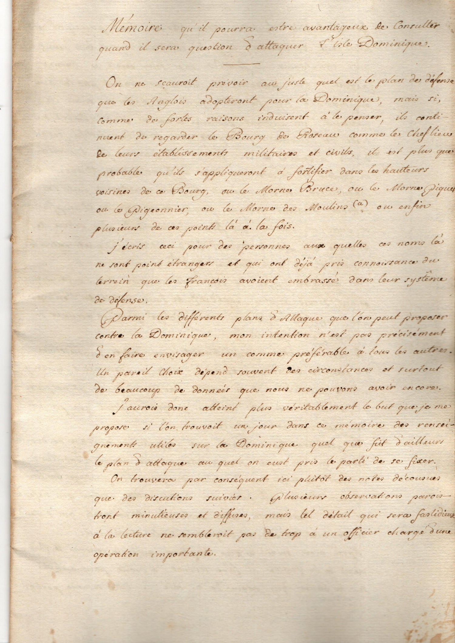 • Mémoire qu’il pourroit estre avantageux de consulter quand il sera question d’attaquer l’Isle Dominique.